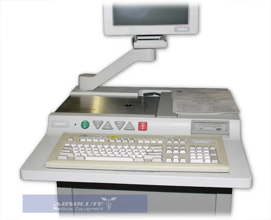 This goes for any of the stress-EKG equipment models you might buy from us. We’ve got an enormous range for you to choose from, in any case. While you’re browsing, have a look at the Quinton Q4500. It’s a tidy, one-cart package, extremely flexible, with lots of good filtration for things like artifact and baseline wander. Reconditioned, it’s a genuine value. Pair it up cost-effectively with the Quinton ST55 Treadmill, another first-class pre-owned find, designed expressly to work with Quinton machines.